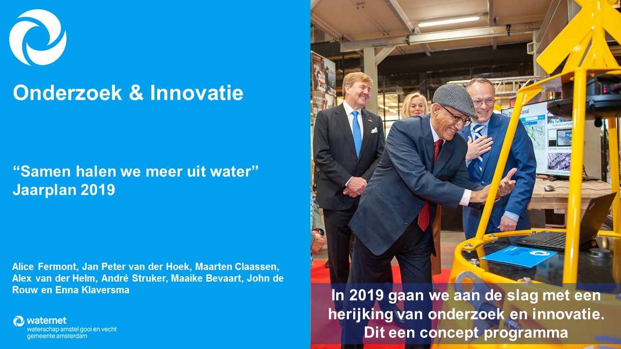 Het onderzoeks- en innovatieprogramma in beeldWaternet heeft voor het waterschap Amstel Gooi en Vecht en de gemeente Amsterdam een doorlopend onderzoek- en innovatieprogramma. De rapportage beschrijft de behaalde resultaten van het programma Onderzoek & Innovatie van Waternet. Hiermee informeren we het waterschap Amstel, Gooi en Vecht, de gemeente Amsterdam, de directie van Waternet, de partners waar we mee samenwerken en verdere belangstellenden over onze resultaat.