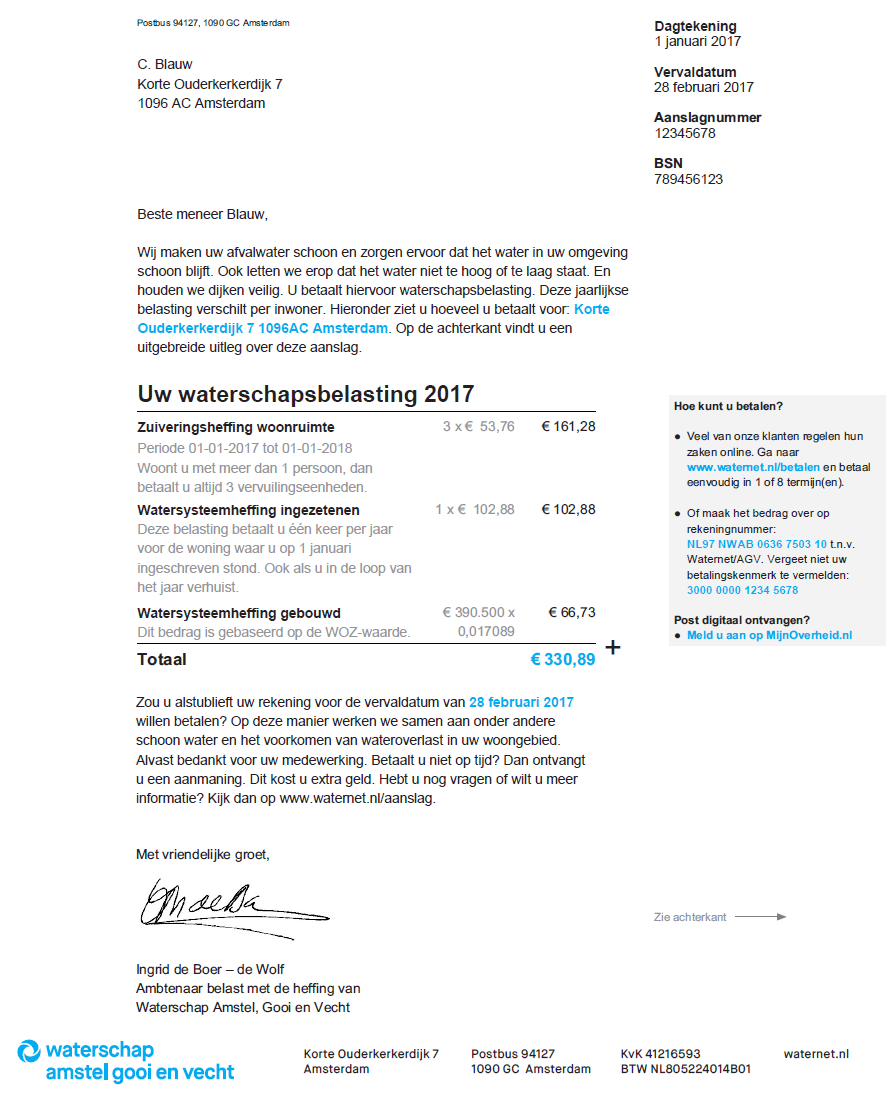 24 juli 2017Samen met klanten hebben we de aanslag waterschapsbelasting verbeterd. Hierdoor is de aanslag voor u simpeler en duidelijker. Vandaag krijgen de eerste klanten de nieuwe aanslag in de bus.